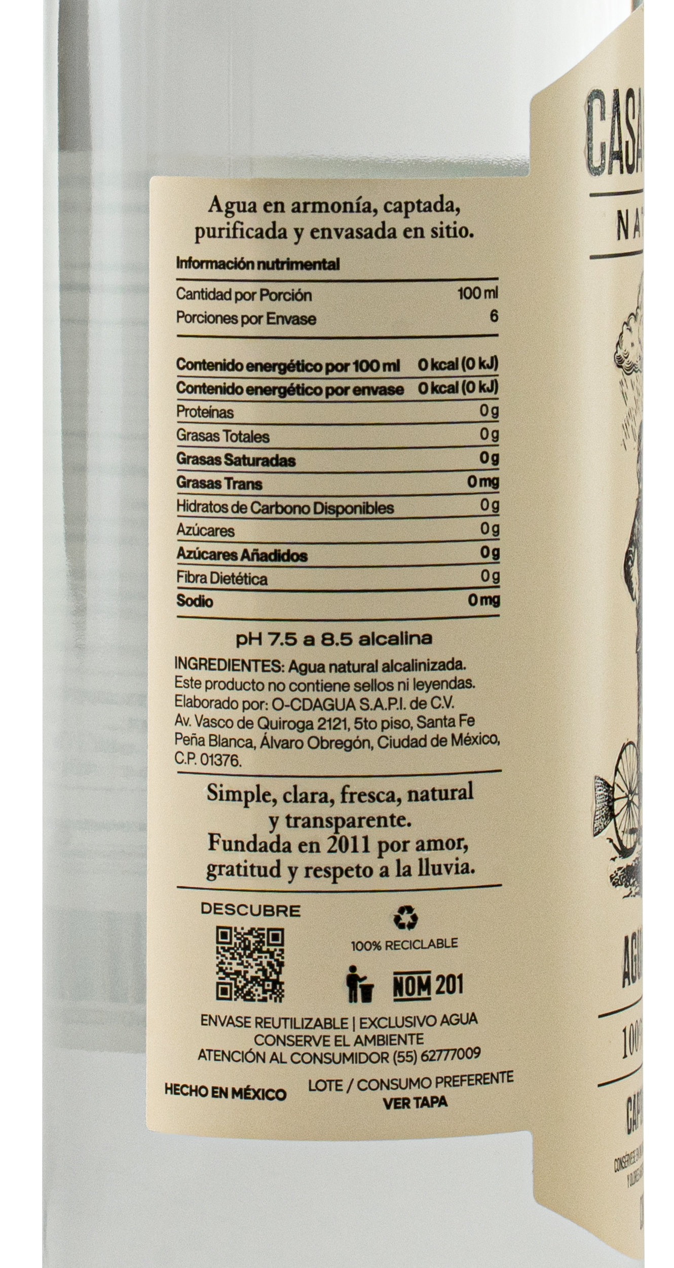 En Casa del Agua creemos que el agua no solo debe ser pura, sino también honesta. Por eso, cada una de nuestras botellas contiene agua de lluvia, captada de forma responsable en la Ciudad de México y tratada en un proceso completamente abierto al público. No extraemos agua de manantiales ni sobreexplotamos mantos acuíferos. Preferimos mirar al cielo y agradecer lo que ofrece.